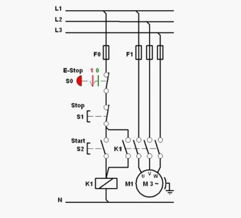 在等級B和等級1中,安全控制系統對故障的承受能力主要是通過采用適當的元器件來實現。如圖所示,保險絲F0和急停按鈕S0串聯在主控回路中。若采用合理的保險絲和可靠的急停按鈕,這個回路里的風險我們是可以接受的。但當安全控制電路中出現任何一個單一故障,如急停按鈕觸點焊死,都會導致安全功能的丟失。故這個控制回路的安全等級只能夠是B級或1級。