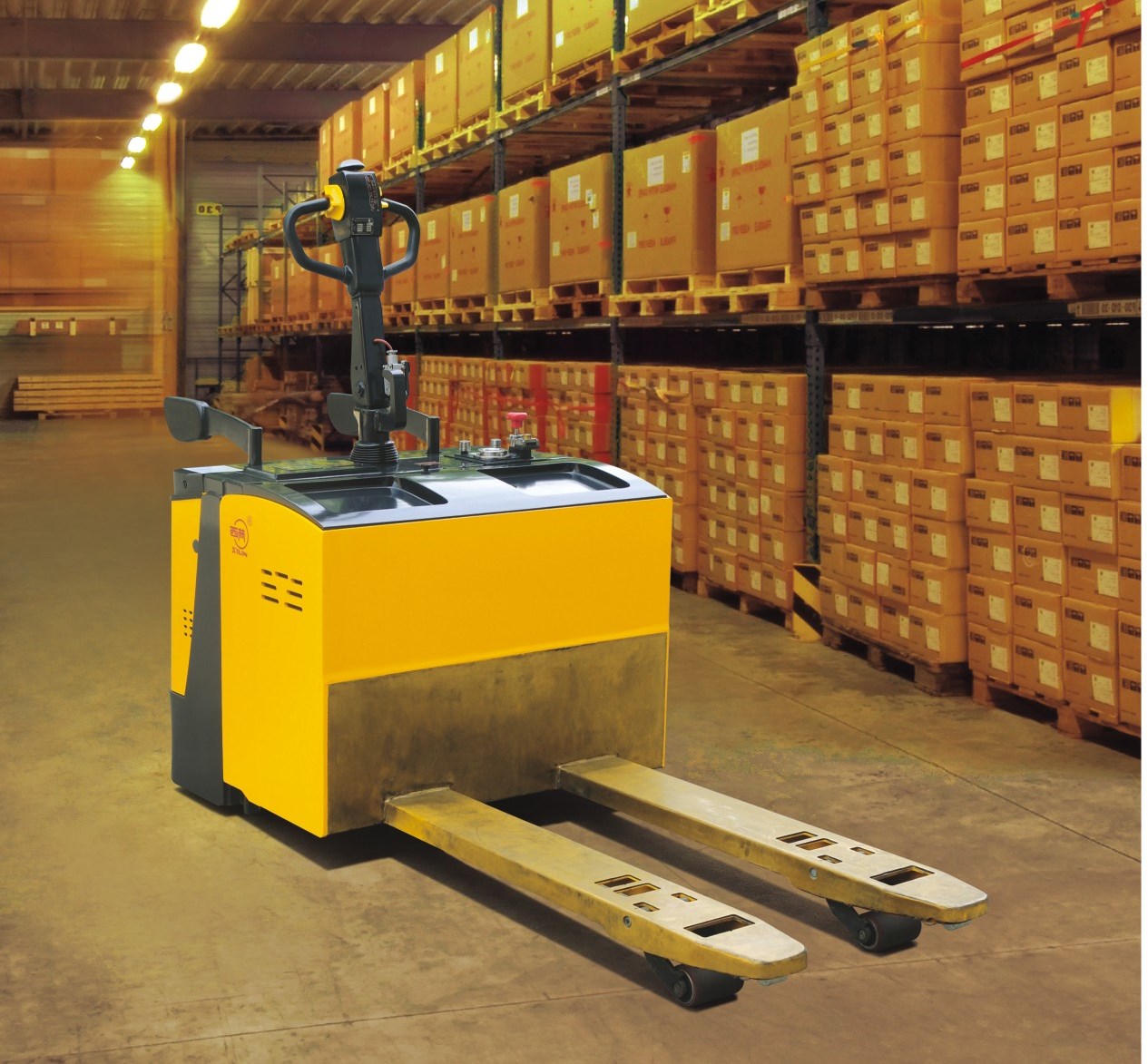 蓄電池防爆托盤搬運車,是采用蓄電池為動力源,以電機為動力,通過齒輪傳動驅(qū)動車輛行走,貨叉的起升靠直流電機和液壓傳動,推動油缸上下運動起升貨叉和貨物。由于該車的行走與起升都是采用電動,駕駛方式為站駕式,轉(zhuǎn)向操作為舵把式轉(zhuǎn)向,所以它具有省力、效率高、貨物運行平穩(wěn)、操作簡單、安全****、噪音小,無污染等特點。該車的電器件均做了防爆處理,因此,該車能夠在易燃易爆等危險環(huán)境中使用。該車采用24伏大容量電瓶,大大延伸了一次充電后使用的時間。